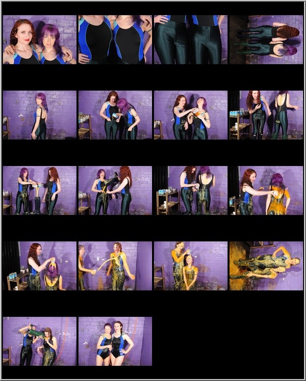 Fully clothed wet-and-messy dungeon fetish mayhem, featuring our girls drenching themselves and each other in all kinds of sweet and savoury foods, and sometimes colourful gameshow-style gunge too!