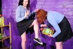 They treat each other's shoes first, then Miss Abigil has her black full-cut knickers well filled front and back before letting her still clean skirt back down over them, and giving Honeysuckle's skirt the treatment.