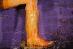 boots, until she's completely drenched including full hair coverage. Then