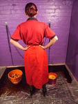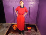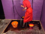 Next the contents of a bucket of eggs are poured into Lady Jasmine's lap, and then she takes to the floor and ensures the back of the skirt is thoroughly saturated in mess too.