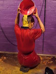 And then, the grand finale, a large bucket of eggs down Lady Jasmine's back. Except it didn't go quite as planned and the entire contents of the bucket are seen pouring down the inside of her collar and inside the polo-shirt. That was cold!