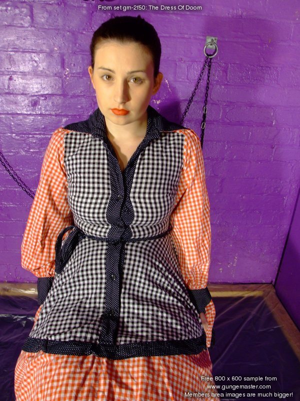Every household has its quirks, and Saturation Hall is no exception. So one day Veronica, who's staying for a few weeks, finds herself enacting one of the household's traditional rituals, putting on the "Dress of Doom", a lavish creation in layers of Black/White and Red/White gingham, complete with matching red gingham pumps, and then totally coating herself in syrup and treacle!