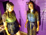 Next Rose has her blouse filled, custard and treacle poured liberally inside, after which it's Veronica's turn for the same treatment of her polo shirt.