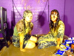 And after that, the two of them empty several bottles of cola down each other's already gunge-drenched clothes, before finally sitting down in the pool of mixed mess on the floor, still fully dressed.