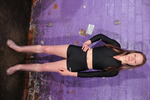 Simple outfit, simple pleasure! Lucia enters the dungeon dressed in a rather unusual swimming set - it's technically a bikini as it's a two-part set, but rather than the horrid skimpy things that term usually brings to mind, this is a rather nice skin tight shorts and long-sleeve zip-top set, which looks fabulous clean and dry, and is going to look even better when Lucia has drenched herself in tomato soup and custard, while she's wearing it!