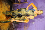 The clothes filling continues, down their backs, in their pockets, filling their pants and swimsuits, and then their boots too, including pulling their bare feet out to show off how messy they are from everything that's flowed down inside their disco pants legs, and then filling the boots before plunging their feet back in, squelch!