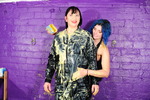 Maude has dressed for the occasion in a high fashion halterneck jumpsuit with flared legs, that we just know is really going to show the stains and leakage as the gloop is poured in, while Kjirsten wears a rather sexy black leatherlook fashion boilersuit, which won't show any leakage, but which will slither beautiofully over Kjirsten's skin as it gets steadily messier inside, and look absolutely deliciously messy when it gets covered outside.