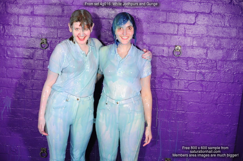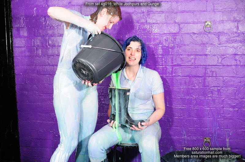 Finished off with full gunge shampoos and facial pours, our two very messy maidens end up very gloopy indeed!